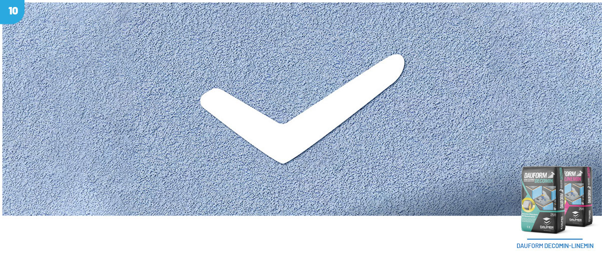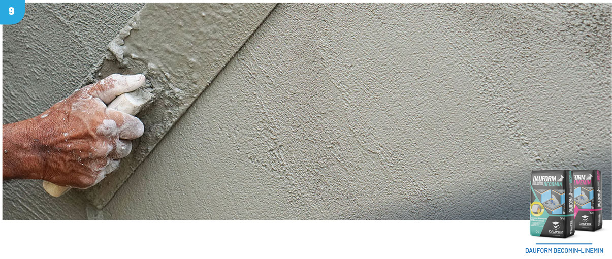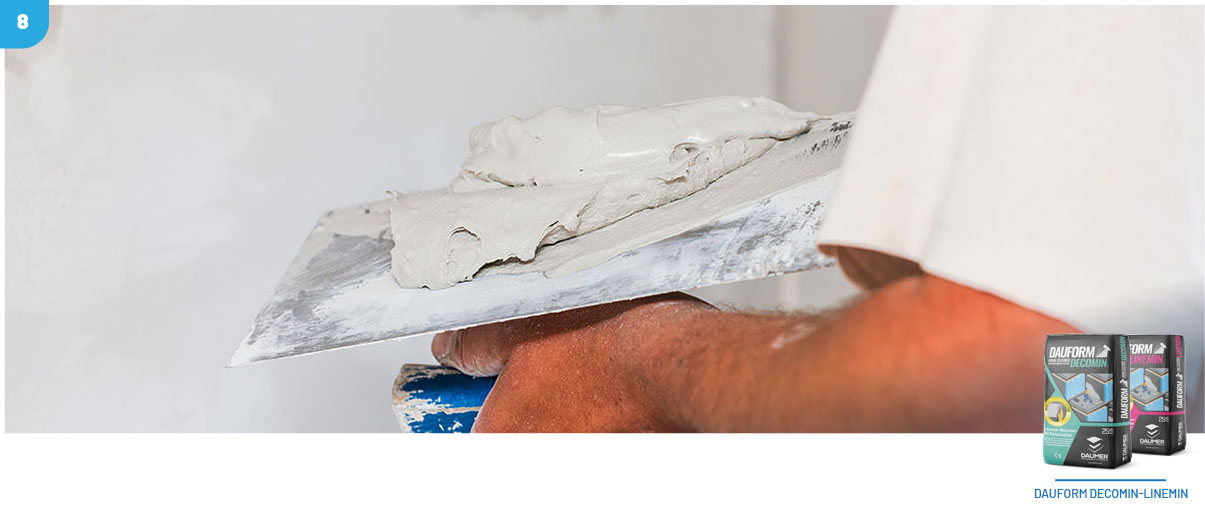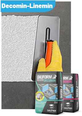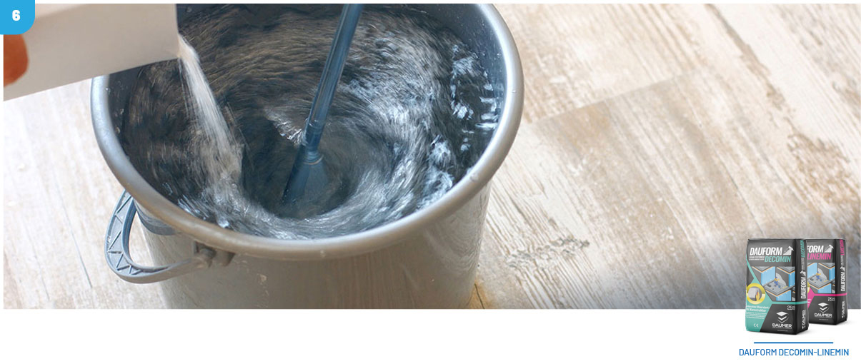 امزج حزمة Decomin أو Linemin من عائلة الجص المعدنية Dauforum مع 5-6.5 لترًا من الماء